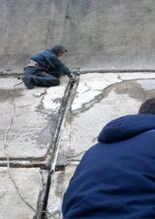 Emergency repair of sections of the facing of compensating basin. Sealing and restoration of the joints between the different sections of the construction with KÖSTER PUR Gel, KÖSTER SB-Bonding Emulsion, and KÖSTER Repair Mortar. Sealing and restoration of the cracks in the vertical walls with KÖSTER 2 IN 1 and KÖSTER KB-Fix 5.