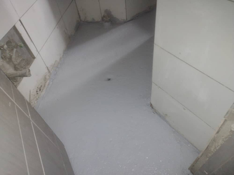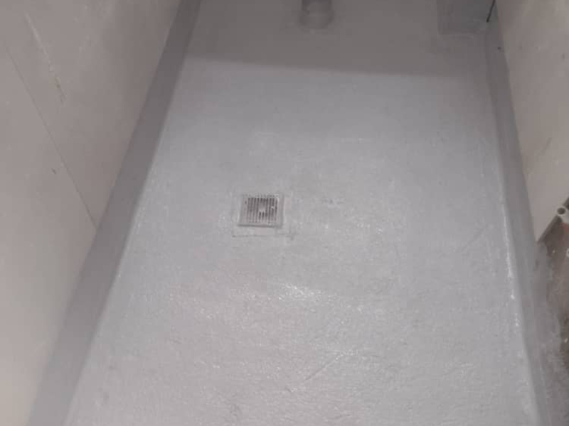 Waterproofing of wet areas prior to tiling, using KÖSTER BD 50. Corners, joints, and penetrations reinforced with KÖSTER Superfleece embedded in the first coat for extra security and crack-bridging performance.