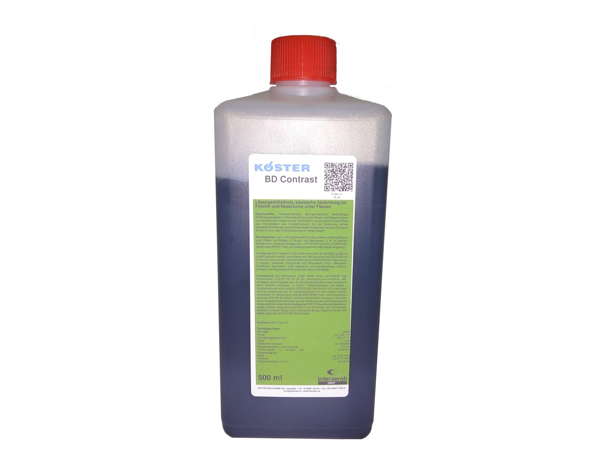 Liquid contrast agent for coloring KÖSTER BD 50 before applying the second layer. Visual inspection will be simplified through color differentiation of the second waterproofing layer.